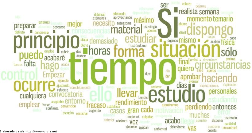 Hay ocasiones en las que no dispongo del tiempo necesario para preparar la materia a un nivel mínimo para aprobar y lo que hago entonces es establecer expectaciones realistas. Preguntas como ¿qué ocurre si no apruebo?, ¿qué ocurre si no saco la nota mínima?, ¿y si sólo me preparo parte del temario? Unas veces acabaré ajustando el temario al tiempo del que dispongo, otras seguiré estudiando pero para la siguiente convocatoria y en algunos casos pospondré el estudio y emplearé el tiempo en otra tarea. Lo importante en cualquiera de los casos es estar seguro de que lo que estoy haciendo es lo mejor, teniendo en cuenta las restricciones de tiempo que tengo en ese momento. Si no acepto la realidad y quiero volcarme en ello aprovechando al máximo el tiempo del que dispongo que, como desde un principio no es suficiente, acabaré frustrándome por no avanzar todo lo rápido que quiero. Me encontraré fácilmente irritable haciendo a los que me rodean sufrir las consecuencias de mi falta de planificación realista.