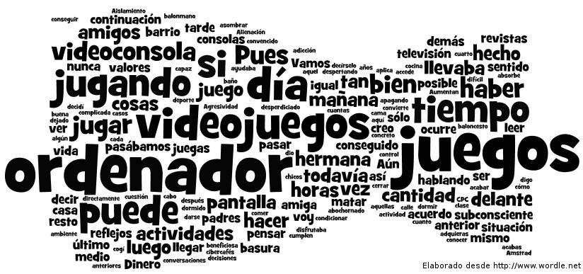 bueno ahora daré mi opinión sobre este tema: ami siempre me gustaron los video juegos, desde mi nintendo, pasando por el starcraft y llegando al dota(q según veo ha generado limites de adicción inimaginables), bueno veo q esta industria se ha extendido bastante incluso habiendo torneos mundiales de video juegos como el WORL CYBER GAMER Y otros q organiza la BLIZZARD, pero la verdad es q esto se esta extendiendo cada vez mas según reviso encuestas y según mis propias observaciones( debido a que estudió la carrera de historia, me gusta investigar y observar) veo por ejemplo q cuando me visitan mis primos y sobrinos, les presto un texto infantil para leer y se aburren y me siguen haciendo travesuras entonces para q se tranquilizen les pongo un videojuego en mi lap top( de preferencia el angry birds o plantas vs zombis que son mas para su edad), pero pa habalr de otro caso caundo visto amis amigos en los suburvios de la ciudad recuerdo q caundo bordeavamos los 10 y 11 años ibamos diariamente ajugar futbol, ala piscina y otros, pero ahora todo lo ven ir a internet pa eso noma son nuestras reuniones, y una vez decidimos jugar futbol pero un corrio 2 minutos y estaba q se moria, creo q por este vicio dejamos de ahcer ejercicios y otras cosas, y sobre el gasto económico si q es caro los internet de esa zona rebasan d gente q se queda hasta 15 horas jugando, y tambien habren desde la 5am, por q ha ea hora llegan par jugar, incluso conozco varios de ellos que s faltan de su colegio e institutos para jugar estos juegos( yo tambien me incluyo), y esto me afecto en parte en la universidad ya que el primer año dedique bastante tiempo ha esto y haciendo mis calculos gaste aproximadamente uno 200 dolares en un año solo en cabinas de Internet y play station, bueno pero ahora poco apoco trato de regenerarme, y compre una maquina para ahcer ejercicios y unos cuantos libros(claro q a veces recaigo en el vicio), pero saber controlarme me ayudo bastante, antes estaba a media tabla en mi clase, ahora me encuentro entre los 3 primeros, pero añadiré una cosa, no todo es malo en los video juegos, y tampoco se los puede «satanizar», ay que como dato importante, que el grupo con el cual jugamos los videojuegos, no recae en otros vicios como el alcohol y las drogas y otro dato interesante los primeros puestos tanto en mi colegio como en mi universidad conocen varios videojugos y a veces voy a jugar con ellos, el detalle esta en que ellos saben controlar sus vicios, y solo juegan un par de veces por seman para relajarse.